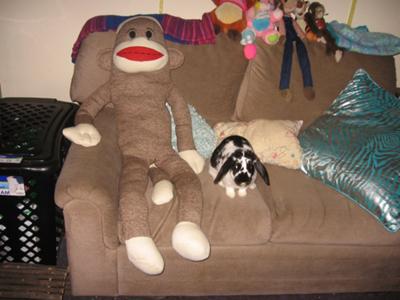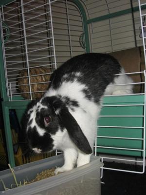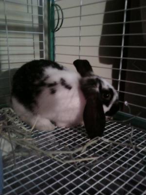 Bodhisattva (Bodhi for short) is a year old male mini-lop who loves to run laps around his room and binky all day long. The things he really loves are jumping on mommy's bed and sitting on her lap, getting pet by everybody, and picking through the garbage in trash cans. He is the most sociable rabbit I have ever known.
