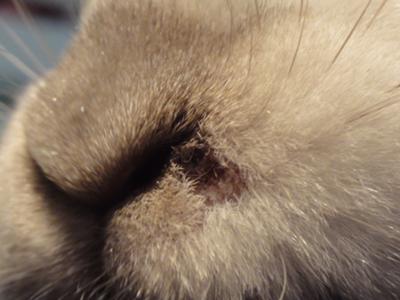I have a 16 week old rabbit. 2 days ago I noticed a sore on the side of his nose. I have looked endlessly on the internet to see what it might be, I have gone to 2 vets and they don't know if it's an infection or just a sore.